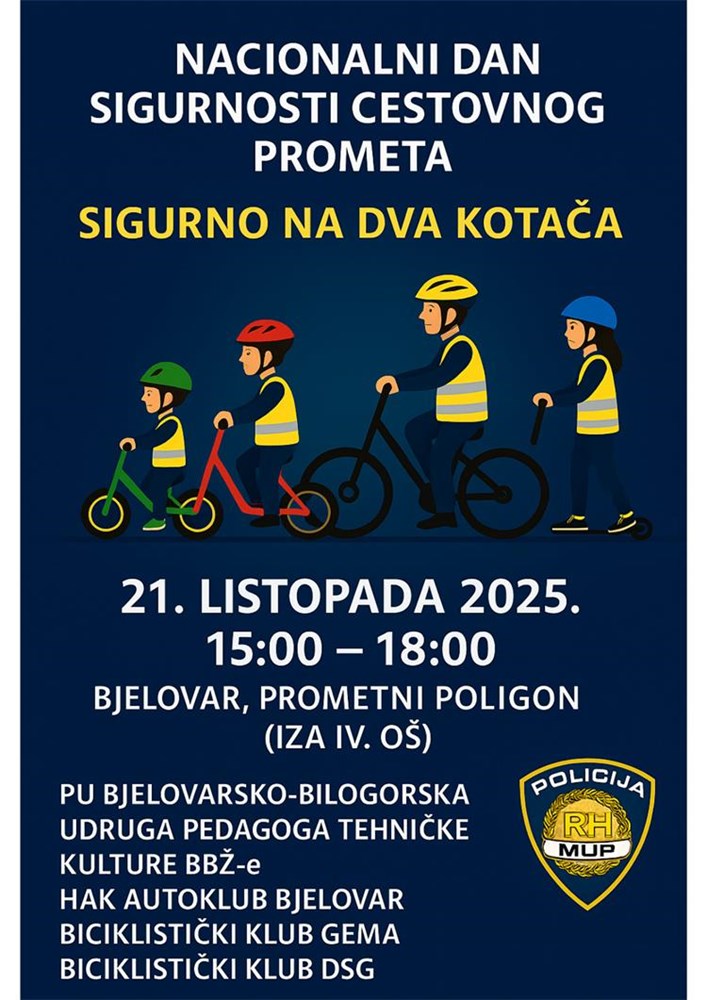 Aktivnosti će se održati 21. listopada 2025. godine od 15.00 do 18.00 sati u Bjelovaru, na prometnom poligonu iza IV. OŠ Bjelovar.