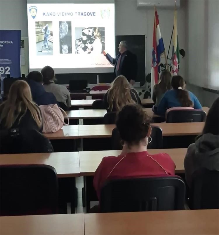 •„Znanost u službi kriminalističke tehnike” - vodio ga je Franjo Farkaš, vođa grupe kriminalističke tehnike, koji je učenicima na duhovit i pristupačan način pokazao koliko su znanost i tehnologija ključni u rješavanju kaznenih djela.